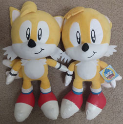 It's an ok plush...but it's not super perfect, either. His nose is rather big, the ears are small and the head shape isn't quite...right? Or the eyes are still a bit off? You can see the prototype has taller and larger eyes, so those were improved too but there's still something that's not 100% Tails-like about this. It's not perfect, but it is also not terrible either.