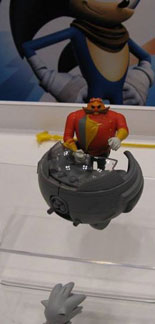 Interestingly, Eggman is painted, but the Egg-o-Matic is not. It's re-designed for Boomstyle as well, it's open in the back, smaller, and he can't sit in it. There's a gun of some kind built into the front. It is likely to have wheels, though they are hard to see in the photo. (notice it is not sitting directly on top of the clear acrylic stand.