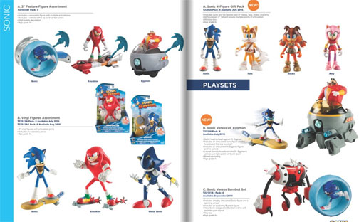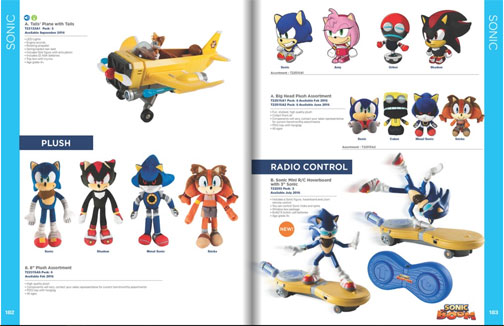 The right page has even more little big-head plush to add to the Sonic/Tails/ Knuckles that were already released. You can see Cubot, Sticks & Metal Sonic (with a Sonic re-release on the line)