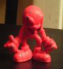 You can tell by the sort of tall head and hunched pose that this is a Toy Island item. Their Knuckles action figures all had this type of look. (Chances are, they cast the eraser after re-sizing a mold). Look how the actual erasers differ from the ones on the box-back photo. Knuckles has his fists up rather than down, Tails is reaching out & Sonic's hands are higher. The only one that's nearly the same is the Chao.