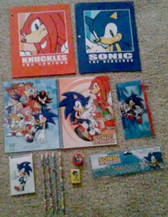 Sonic themed school supplies from 2014