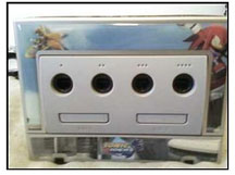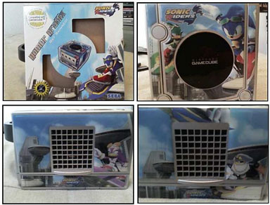 Here's something to add some fun to your Game Cube: a skin! This is a skin (a series of stickers with graphics on them, that are precicely made to fit on your console, to decorate it) from "Gamer Grafix" As you can see, it's for Sonic Riders, and has pictures of nearly everyone from the game to go on all sides of your cube.