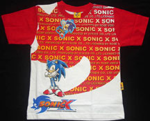 Here's an interesting design that uses the "Sonic X" title and also the actual copyright information (!) as a design feature! Repated over and over again in the logo sihlouette face, the words form the pattern.