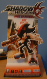 Here are 2 smaller stands for the Shadow the Hedgehog game. They are both cardboard, and stand about a foot high. The first one goes with the 'hero or villain' theme, and positions the pop-out Shadow between the two sides. Sonic representing hero, and some random thing from the Black Doom on the other.