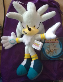He was released alongside their other modern characters like Amy, Vector & a Chao, so where you find those, you'll likely find him too. In this case it is at an EB Games store in winter 2018. With this non-factory photo what you see is how the doll will be when you find it in stores. It's ok, a fair representation of him, especially for a smaller size like this. They use real furry fabric for the chest fur & embroidered details for his gloves. He IS posed on purpose with one hand out to do the telekenisis. His head is a bit less 'domed' than the factory photos. The eye & mouth embroidery is ok, but the lower face comes across a bit odd, as does 1 un-cooperating spike there on the left side. These are still around 14.99 or so where you find them.