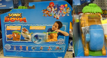 Here is some kind of launcher playset. It has a 'cliff' in the style of the show, with 2 trees and a bit of path. The cliff launches that wheel thing that Sonic is in. With how Eggman is positioned in the egg-o-matic there in the background, it's implied that he comes with the toy as well. (But he doesnt!)