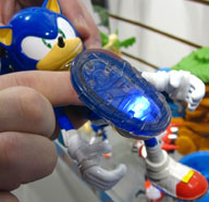 This figure is larger than all of the others so far, at 7 inches. (That hand is likely there to show the size, it seems kind of tacked in there) The gimmick for this figure is that the shoes light up blue with a real glowing effect. It also has sound effects like zapping noises and tapping / running sounds.