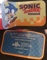 Here is Toy Factory's actual classic Sonic plush. This was won in a claw machine in 2017. Toy Factory may be partially based in Canada, but it also has a Texas USA address as seen there on the paper tag. So, it's likely these dolls will be win-able in both countries.