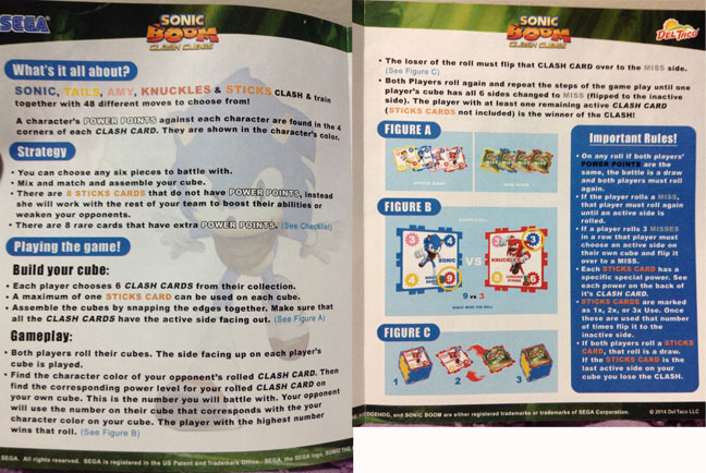 The restaurant Del Taco has kids meals with prizes inside. For the release of Sonic Boom, they created the prize called "Clash Cubes", which are actually an interesting and fun concept. All the photos in this area are kept large so you can read what it's all about.