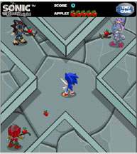 What does it do? You use only arrow keys to face Sonic in the different directions in order to help him block apples. Sonic will swat the apple himself, so you just need to turn him. The apples increase in speed/frequency as the game progresses. You can see the alt versions of Shadow/Lancelot, Knuckles/Gawain and Blaze/Percival. The "premise" (vauge as it may be) is to train Sonic with this target practice. Game discovered by Calistine