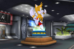 Smaller versions of the statues also appear around the shopping areas as seen above. The Amy is also on Central Table but she's hidden behind Knuckles in the photo. Each statue sits among fake greenery and is on a lighted base. Some are in front of clothing stores, and others are infront of alcoves around the mall (Amy/Knuckles) If you'd like to see these in person, you need to be on PSU for the PC or the Xbox360.