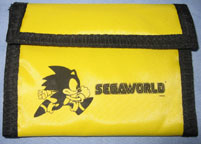 A second wallet appears! These are from a Segaworld in London, and in 2 colors. Sure it's just a bright yellow (or blue) & black synthetic canvas-texture wallet...but it's ANOTHER Sonic wallet. The classic running stock-art looks great against the bright yellow or medium blue and Segaworld logo.